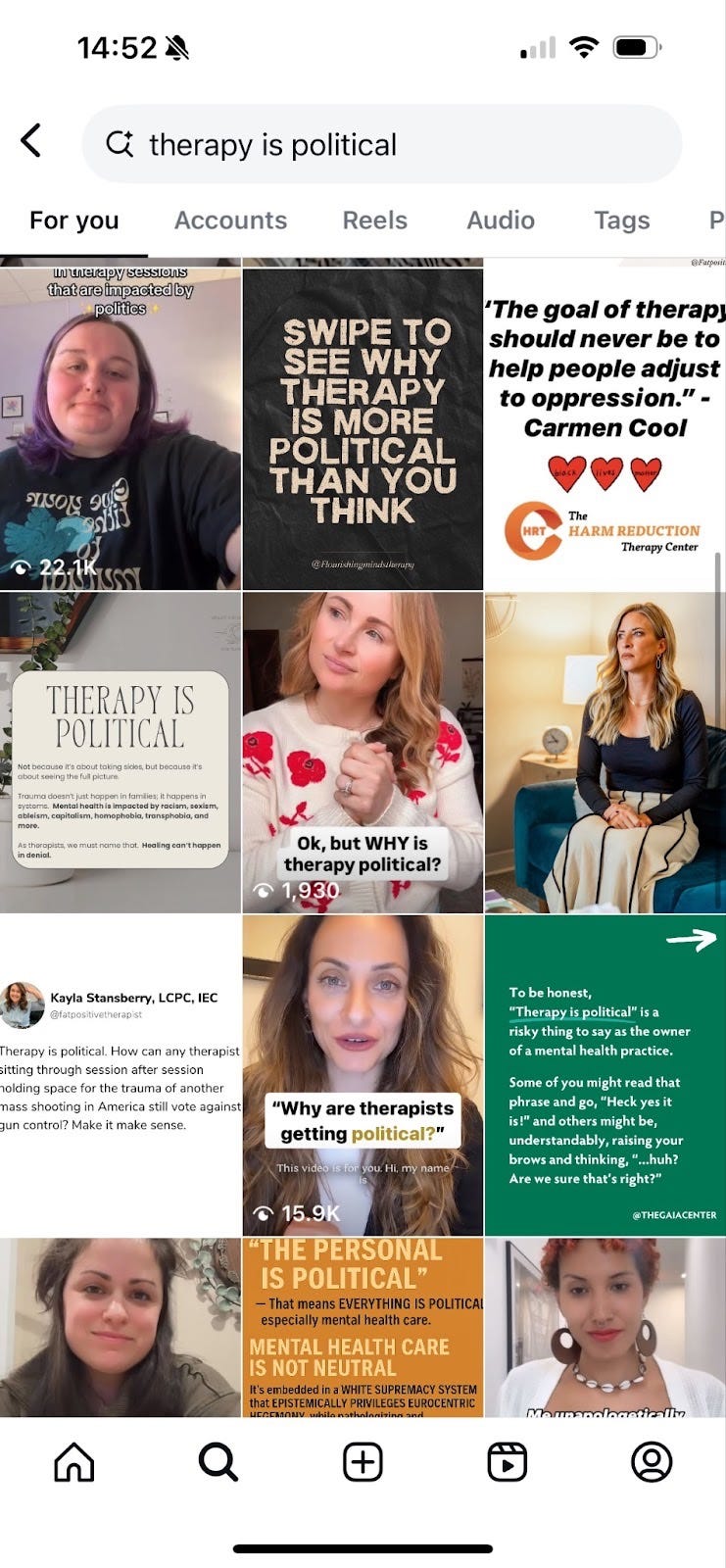 A popular refrain you hear these days: “Therapy is political.” A largely younger generation of therapists have rejected the notion of the “blank-slate” clinician and are unafraid to share their politics, ideologies, and personalities online (present company included). This is in service of addressing that power dynamics exist in the therapy room, just like they do anywhere else. It is also an acknowledgment that therapists are human people, and as such, exist within social contexts of their own. Therapists, like other humans, cannot ever be truly objective or neutral. (Before you say it: Neither can AI.)